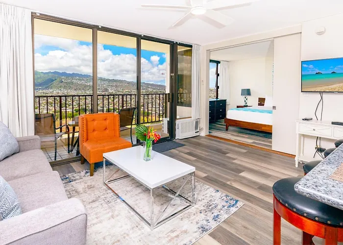56m²のPanoramic Mountain View Condo With Free Parking! ホノルルから歩いてわずか6分離れたQueens Surf Beach Parkなどの市内のさまざまな観光スポットに行きやすいです。 ホノルル動物園からたった500メートルに位置するこの寝室1室のアパートで、顧客はプールを利用できます。
